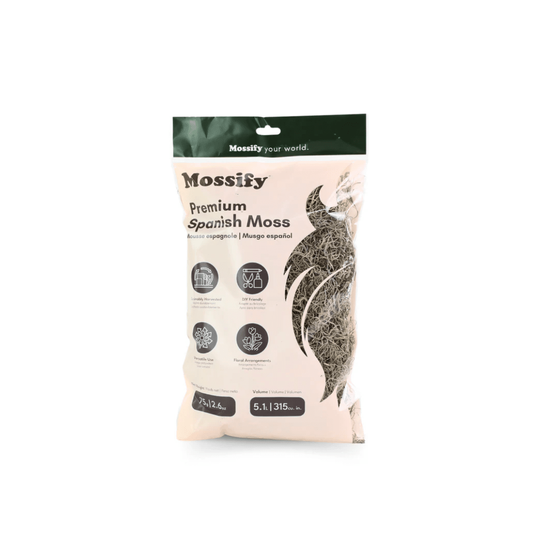 Our Premium Spanish Moss comes in dried form. This moss is more than just a decorative accent, its rustic texture is great for enhancing plant displays, crafting unique home decor pieces, and bringing natural beauty to your arrangements.