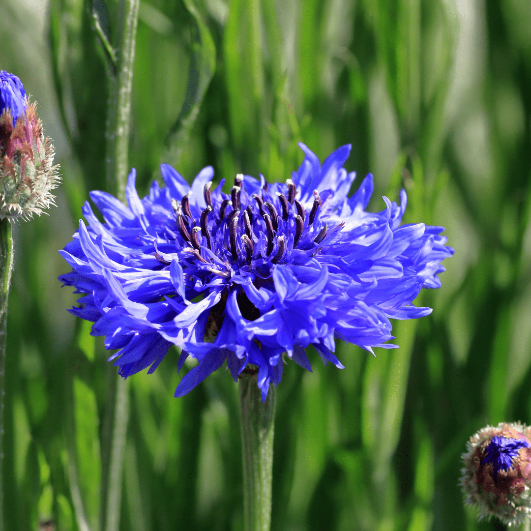 Regular price $3.49Centaurea Blue Boy Centaurea cyanus. Centaurea are also known as Bachelor's Buttons. These familiar, charming, brightly-coloured pompoms on fuzzy grey stems, are well loved by humans and attractive to beneficial hover-flies. Blue Boy is at home in borders, with herbs, or in the kitchen garden. Direct sow Blue Boy cornflower seeds at repeated intervals in April to June to extend bloom. Centaurea can also be planted in October on the Coast. Blue Boy has the traditional vivid blue blossoms, tall growing for masses of cut flowers. Centaurea flowers also dry particularly well. Tear fresh flower petals for use in salads, teas, or fancy drinks. Plant height 90cm (36"). It is drought tolerant once established, so good for xeriscaping.