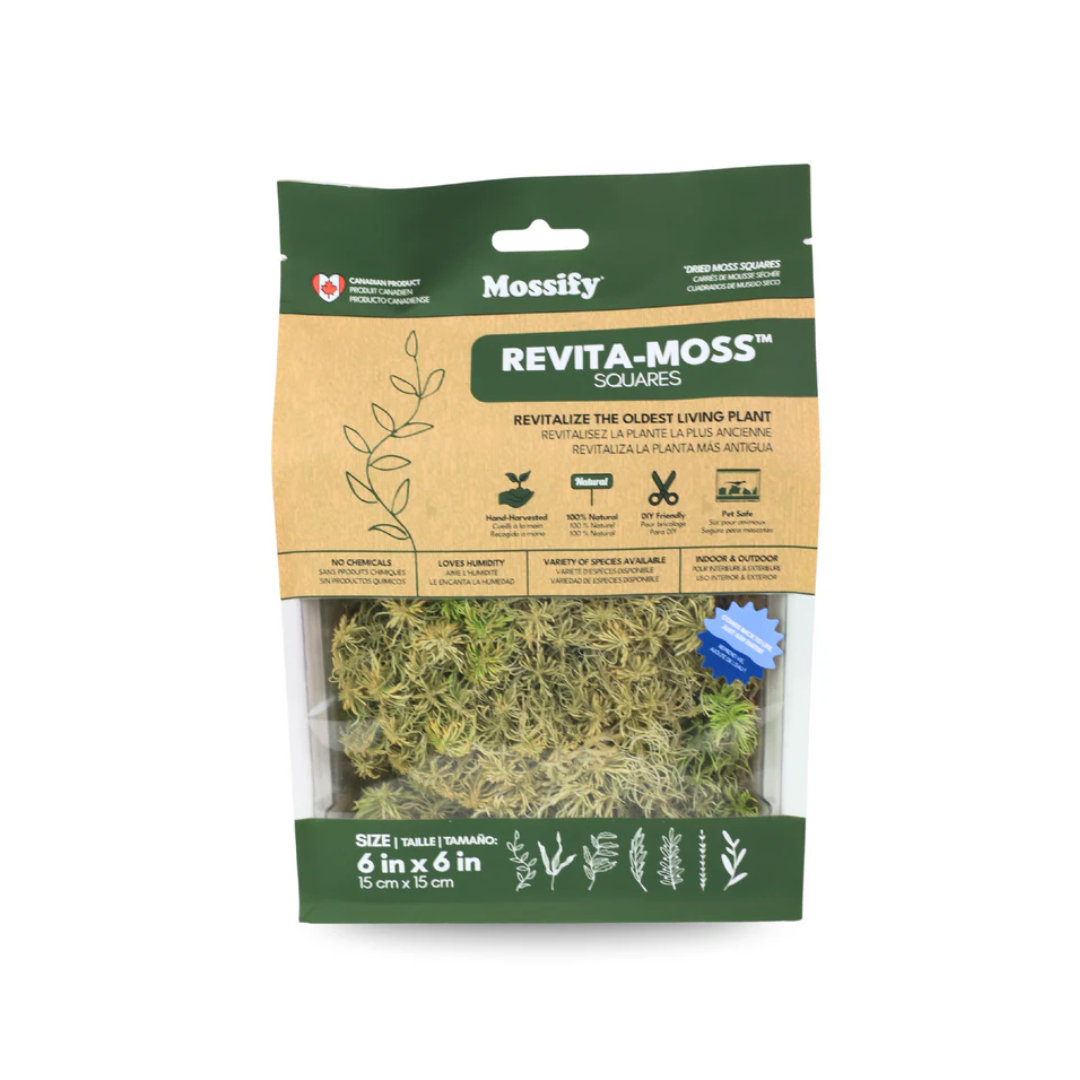 Each 6 x 6 inch square is alive, but arrives in a dormant state, meaning: it may look dry at first, but with moisture and care, it softens, regains its color, and springs back to life. This makes it perfect for enclosed environments like terrariums or other low-light, humidity-rich setups.